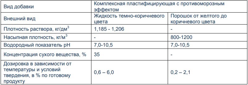 Добавка соответствует требованиям ГОСТ 24211 «Добавки для бетонов и строительных растворов. Общие технические условия» для «теплых» и «холодных» бетонов.