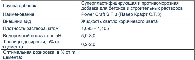 При использовании Power Craft S.T.3 с другими добавками необходимо провести лабораторные испытания для оптимизации состава бетонной смеси, либо обратиться к производителю, LLC «CHEMICAL CRAFT» (ООО «Кемикл Крафт»).